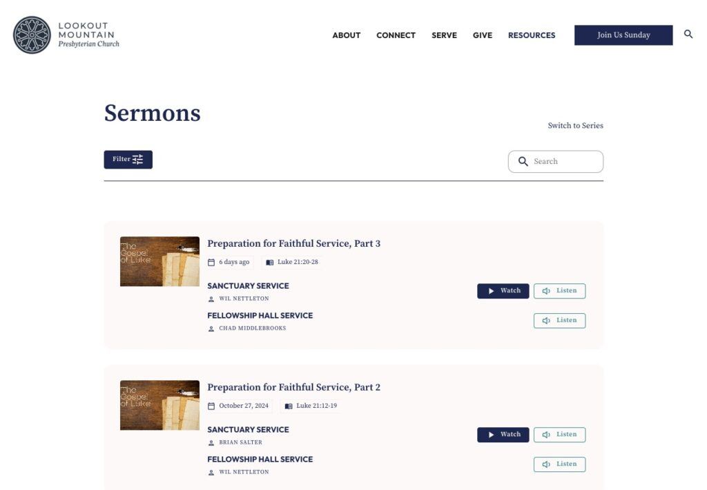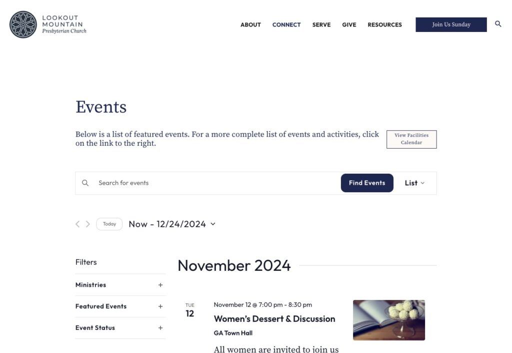 By focusing on a seamless user experience, streamlined operations, and empowering staff, Mission Lab delivered a solution that not only meets Lookout Mountain Presbyterian Church’s current needs but also supports their long-term growth. Our strategic approach to design, data management, and staff enablement underscores the importance of practical, accessible web solutions for non-profits looking to make a lasting impact online.